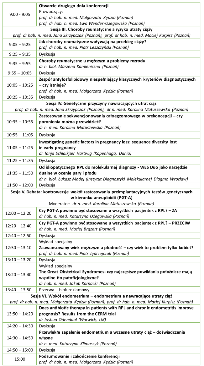 Konferencja ,,Wybrane Patologie Wczesnej Ciąży – Nawracające Poronienia” to wydarzenie poświęcone diagnostyce oraz terapii poronień nawracających, jak również wybranym zagadnieniom związanych z późnymi utratami ciąż.